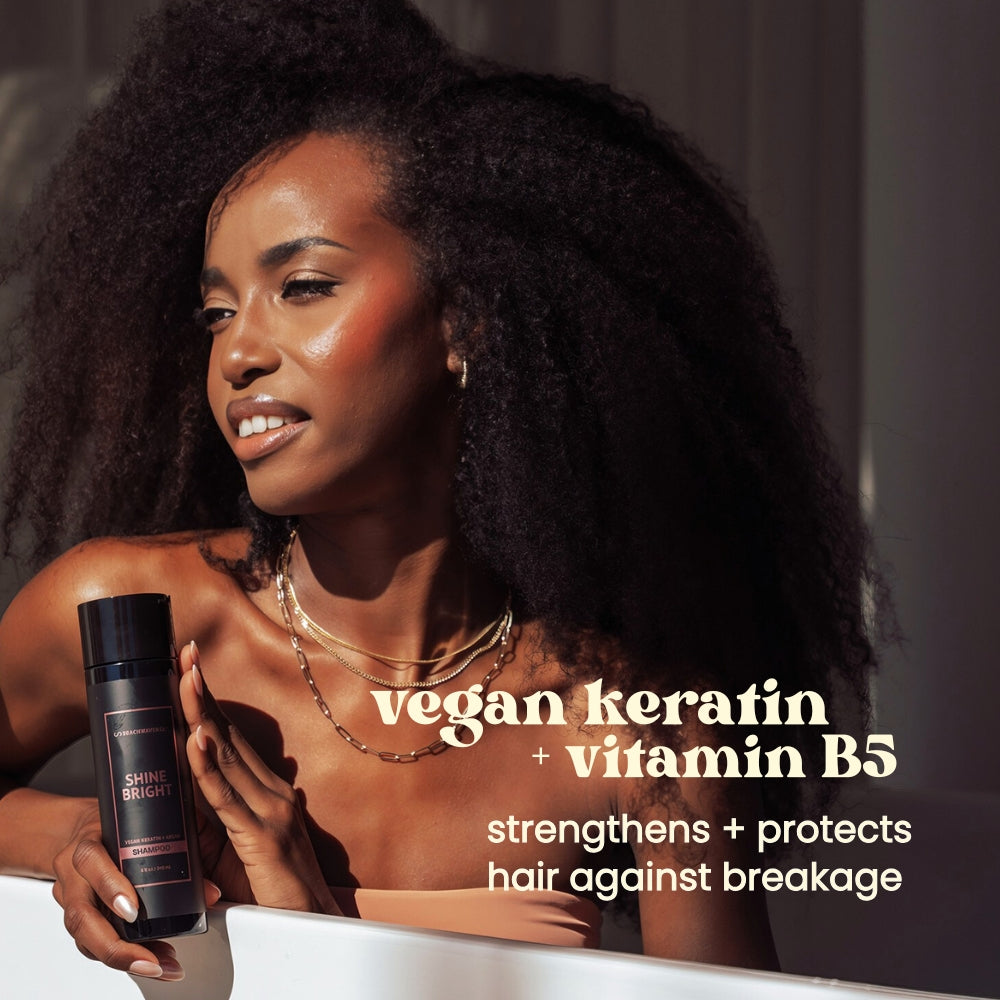 Shine Bright Shampoo is nourishing. strengthening and revitalizing to restore luster and reveal exceptional shine in the hair. It deeply. yet gently cleanses hair and perfectly prepares it for the next step in your wash day routine! Protecting hair fiber against breakage and split ends. Shine Bright creates a shield around damaged cuticle areas. Soften. de-frizz and unveil your most gorgeous. luxurious mane using this new formula.